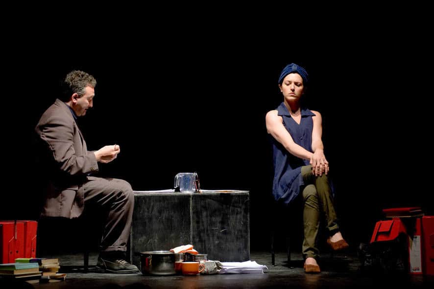 Giovanna Giuliani (lei), magnetica dall’inizio alla fine, placa il suo incalzare stizzoso con un rigoroso controllo della voce per rivelare la tenerezza di una donna che non si lascia scoraggiare, non evita il confronto con l’esterno anzi, lo cerca, dolce ma decisa. Tony Laudadio (lui), espressività fortemente caratterizzata con un’aria sorniona e contegnosa insieme, si esprime al massimo nei momenti di imbarazzo, fino a sciogliersi del tutto nel lieto fine.