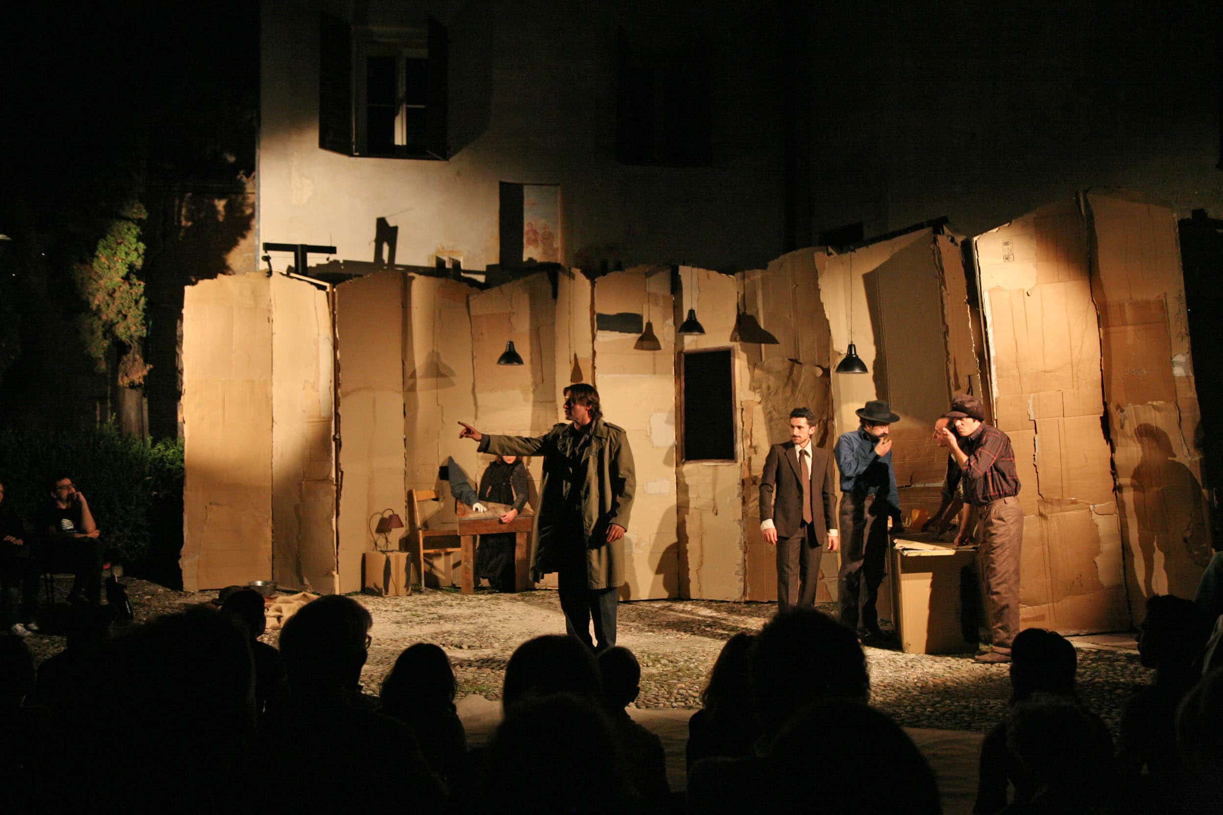 Il romanzo narra di K., un agrimensore che giunge di notte ai piedi di un castello governato da una burocrazia rigida e inflessibile, che porterà il protagonista a cercare di avvicinarsi agli abitanti del villaggio con lo scopo di poter finalmente parlare con i signori del castello. Ripercorrere la vicenda di K. (interpretato da un superbo Ivan Franek) significa seguirlo in un deambulare mistico tra zone di luce e ombra nei meandri di un luogo che presta le sue mura ad una narrazione solida, capace di far sprofondare il pubblico in un continuo movimento interiore, parallelo a quello del protagonista della vicenda. Ed è lo stesso regista che, al pari di una guida spirituale, invita gli spettatori a percorrere i confini della struttura, fino ad addentrarsi in uno spazio che lentamente assume le forme di un labirinto: scatole di cartone, sacchi di iuta, oggetti di legno e poveri ben si prestano a costruire l’immagine di un mondo artificiale, governato da una potente macchina burocratica in grado di attanagliare gli esseri umani ad un asservimento totale, senza vie di uscita.