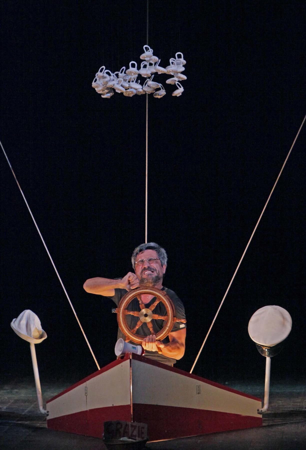 Ritmi scanditi in tempi altri, sull’immaginaria barca dove Carmine Maringola rievoca i suoi trascorsi marittimi nella scena disegnata, scritta e diretta da Emma Dante, l’eroina siciliana acclamata dentro e fuori nazione. Ritmi incalzanti, succitati, a consolidare la cifra stilistica della regista palermitana che nei tempi scenici traspone l’istinto liberato. L’istinto scardinato da sovrastrutture figlie di un retroterra culturale, soffocante e causa di timori attitudinali, vergogne.