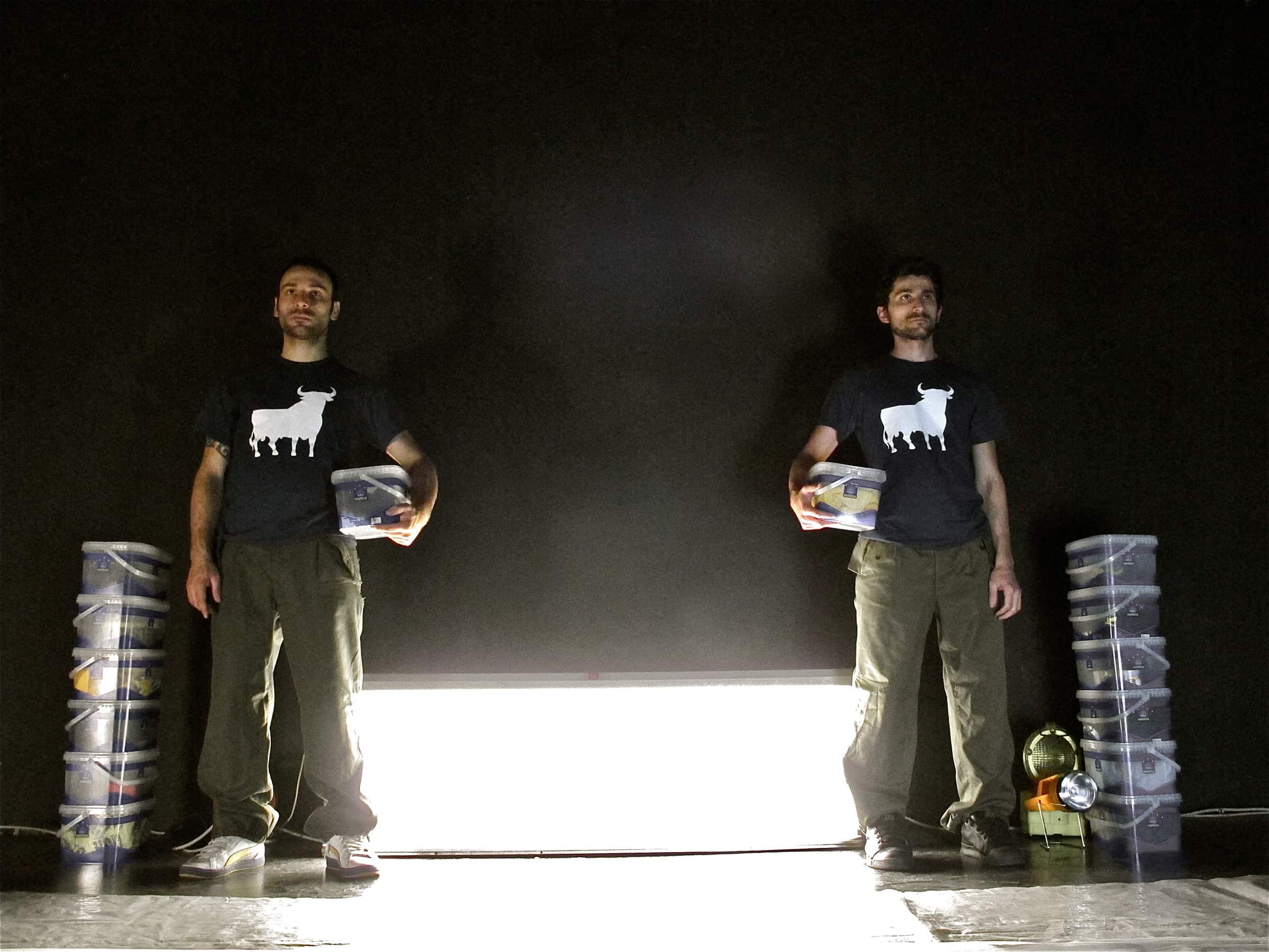 Luci neon spersonalizzanti, cellophane e pellicola imballante, musica tecno e contenitori ermetici per esplorare e svelare, con spietatezza e lirismo, la generazione dei trentenni attraverso la metafora di due vitelli a “stabulazione fissa” prossimi al macello. Un lavoro in versi che comincia all’interno delle stalle dell’Agriturismo MonteSacro nel Gargano, una “in-stallazione” che si fonda su una narrazione a tratti, appartenente slegata, frontale e asciutta, come un flusso di coscienza. Il pubblico si appassiona, qualcuno, anche tra i più giovani, si infastidisce e li accusa di far retorica. La musica altissima e il forte impatto scenico diffondono nell’aria un’atmosfera di disfacimento. Fuori discussione che il lavoro di Matteo Latino, come quello dei precedenti vincitori del Premio Scenario, dai Babilonia Teatri a Teatro Sotterraneo, parli del presente, utilizzando una poetica e uno stile generazionale. Toccherà al pubblico decretarne il successo.