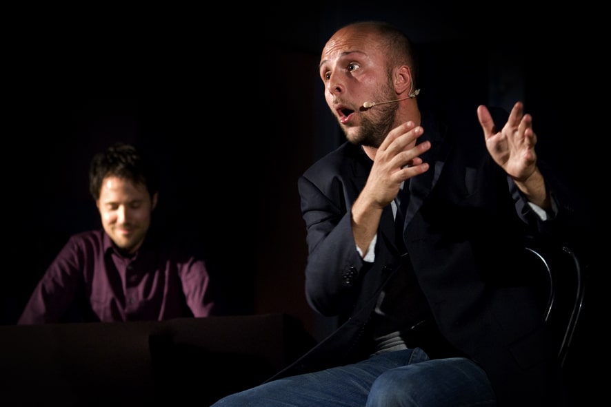 La nostra redazione assisterà all’avvio della rassegna e ne seguirà il percorso da uno spettacolo all’altro, andando a sondare quel territorio fertile che è la sperimentazione e la contaminazione tra le arti sceniche. È infatti molto vario il programma proposto da Rizza, a partire dalla serata d’apertura con il concerto Trails for celtic harpdi Stefano Corsi, musicista ed esperto di arpa celtica che propone brani di autori del ‘700 come Turlough O’ Carolan e di metà del ‘900 come Sean O’Riada che ha dato suono a Barry Lindon di Stanley Kubrick. La musica accompagna un altro spettacolo, Gesuino,un cabaret esistenziale di Simone Nebbia. Artista e critico teatrale, Nebbia racconta cantando, attraverso il personaggio di Gesuino, la vita politica, le rivoluzioni, gli anni in cui appartenere a un partito era una scelta di vita. Di intrecci di vite e personaggi al limite tra la morte e la vita parla Gioco di Mano, del giovane gruppo Carrozzeria Orfeo formatosi all’Accademia “Nico Pepe” di Udine solo tre anni fa e ora presente in molte rassegne estive e invernali.