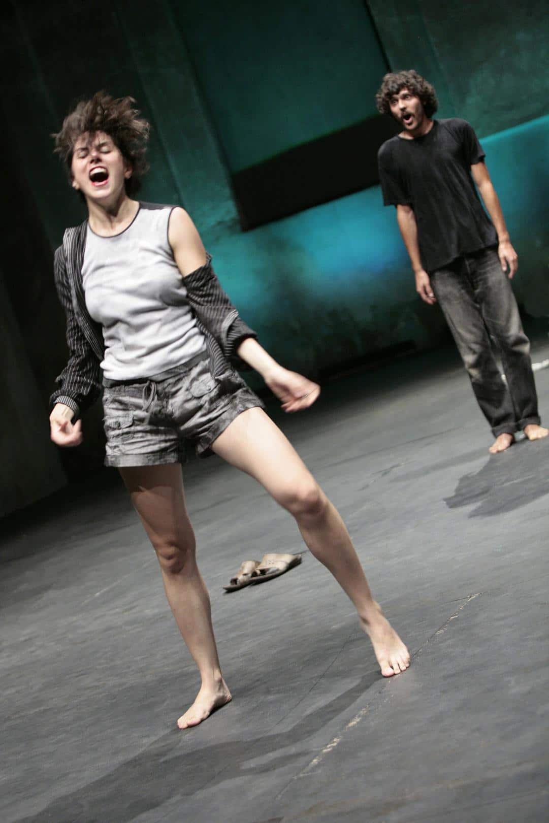 Per indagare l’umanità della voce, i protagonisti del workshop si sono affidati al mito, alla dimensione tragica dei testi classici, da Antigone di Sofocle a Le Troiane di Seneca, passando per Femmes de Troie da Euripide nell’adattamento di Matthias Langhoff, fino a Enfonçures, Chimères et autres bestioles del regista e drammaturgo francese Didier-Georges Gabily. Il risultato è un montaggio non lineare che permette alla voce di indagare se stessa, calandosi pienamente nella dimensione rituale della declamazione. Nel più scarno e tradizionale semicerchio corale, dieci corpi guadagnano il silenzio e conquistano spazio sonoro sovrapponendosi e intersecandosi. Due lingue in scena – francese e italiano – giocano a farsi eco l’un l’altra, passando dal monologo alla pluralità della phoné, quasi come se in scena si stesse giocando a lanciarsi un oggetto che non si vuol far cadere a terra. Le traiettorie sono inaspettate e confuse, non ci sono personaggi a cui aggrapparsi e nemmeno un’unica lingua familiare e scontata, ma frammenti da raccogliere e accostare. Contenuto manifesto di ogni stralcio drammaturgico è la donna oppressa, privata di dignità, stretta ma più ancora costretta nella drammaticità del conflitto e della distruzione. Una terra, una città, una madre, presenze femminili che non possono smettere di subire violenza e sopruso e che, cariche di consapevolezza, reggono sulle spalle il peso di un mondo in armi. Accanto a loro gli uomini, attori di distruzione, ma vittime anch’essi di un meccanismo logorante. Si racconta di donne e uomini del mito per parlare di guerra dall’antichità a oggi e arrivare a indagare l’essere uomini e donne nel presente contemporaneo. Il quadro finale vede i giovani attori danzare lentamente in coppia e una voce sussurrare: «Essere umani ancora fino a domani».